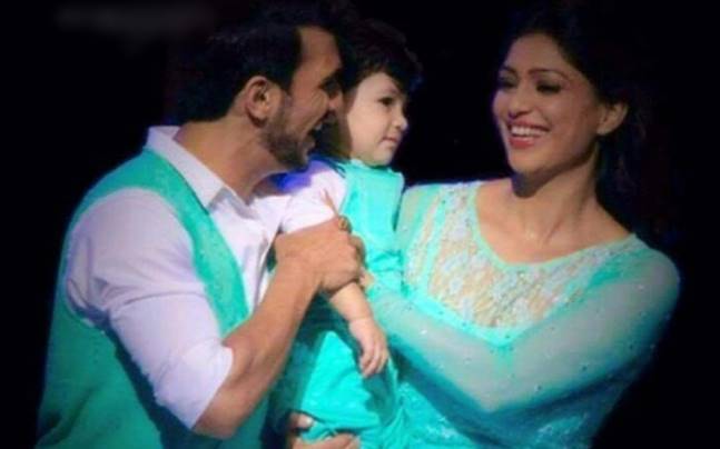 Arjun Bijlani Wife - Arjun bijlani welcomes lord ganesha with his son and wife.